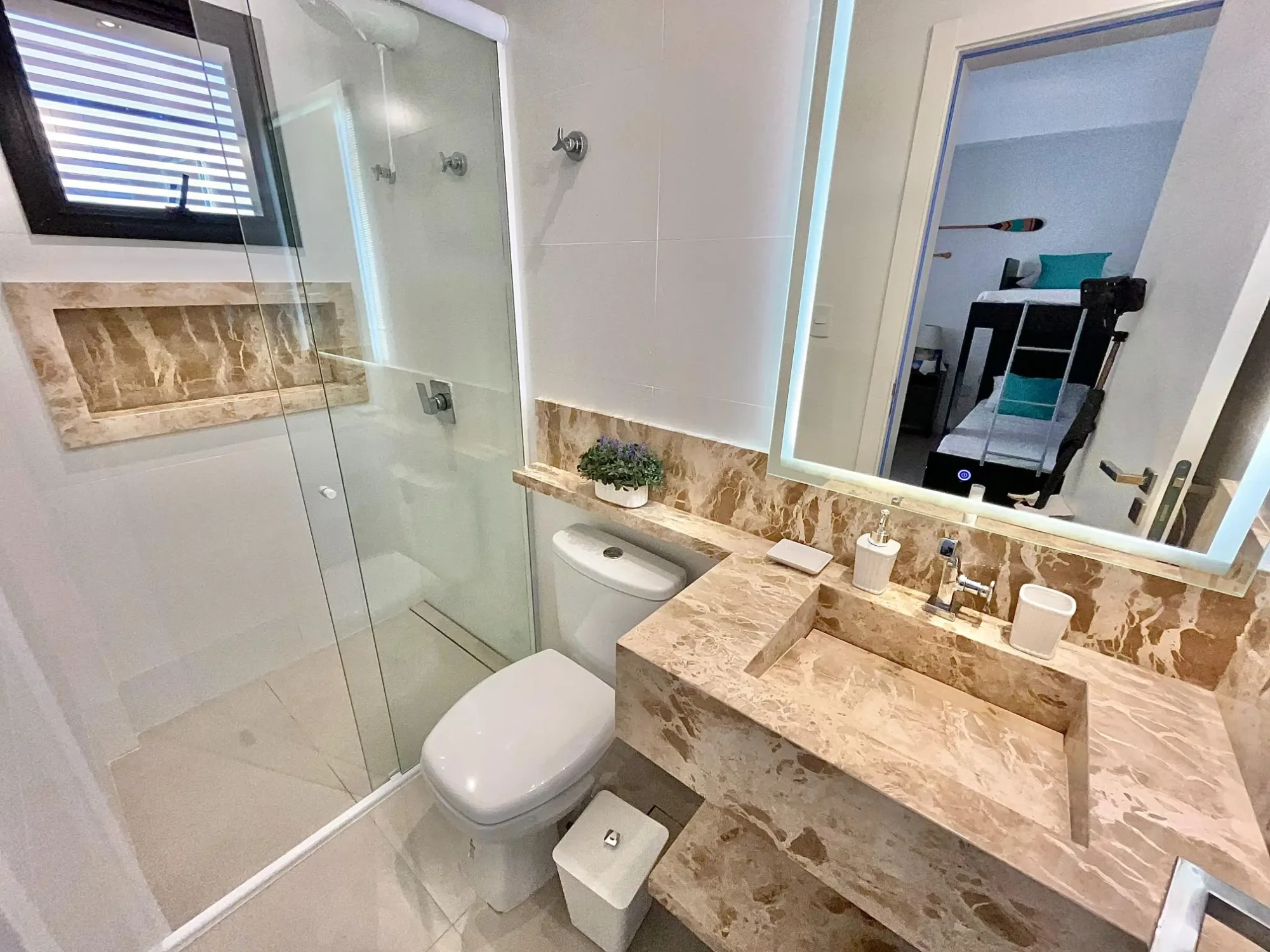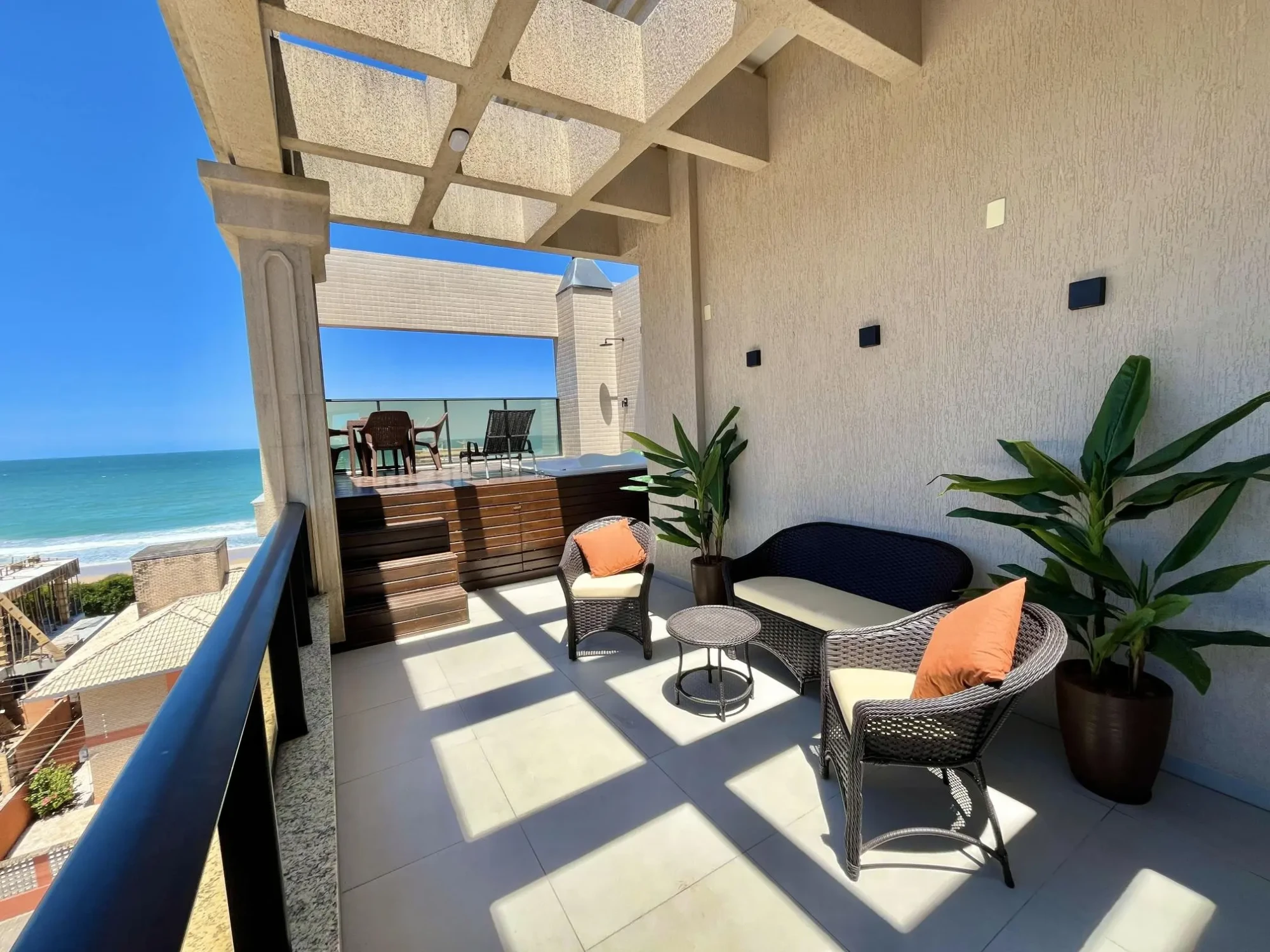 No pavimento inferior, veja o mar em qualquer uma das 3 suítes e sala de estar. Na suíte master, desfrute a vista panorâmica em uma hidromassagem para 2 pessoas com cromoterapia.